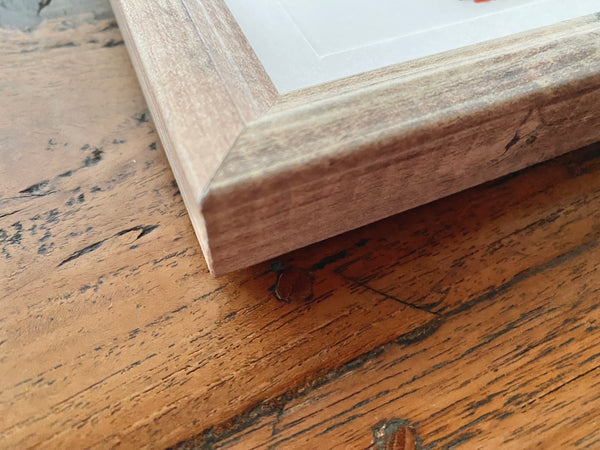- 5” x 7” wood frame has a matted opening of 4” x 6”