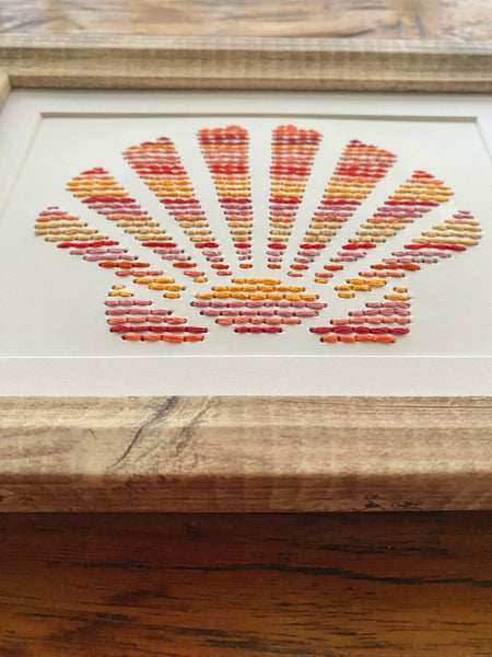 This tranquil, coastal tabletop framed seashell is delicately and carefully hand sewn onto clean, white cardstock with warm or cool hues for a clean beachy feel. It is matted and framed in a beautiful wood finish frame. Choose from warm or cool colors from the dropdown menu. It is the perfect gift for a beach house, hostess, housewarming or birthday present… or for your own personal collection. It is a truly unique piece to add to your own or someone else’s interior decor.