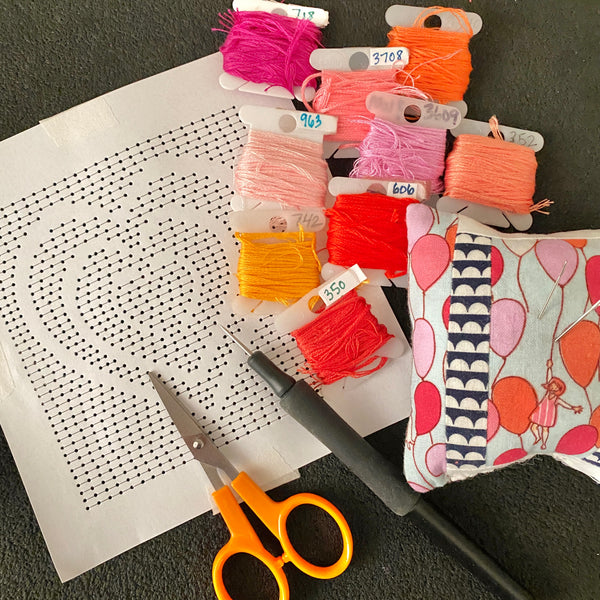 - Hand sew with thread colors of your choice, or use the included guide of suggestions